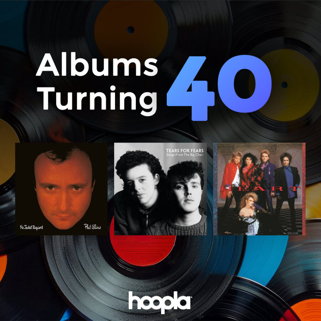 Notable albums: Tears for Fears, Songs from the Big Chair; John Fogerty, Centerfield; LL Cool J, Radio; Heart, Heart; John Mellencamp, Scarecrow; Phil Collins, No Jacket Required