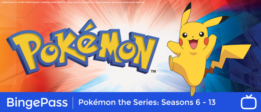 The Pokémon BingePass is a collection that allows kids to watch seasons 6-13 of Pokémon the Series with just one borrow. With 380 episodes of thrilling escapades, every viewing brings them closer to becoming a Pokémon Master.
