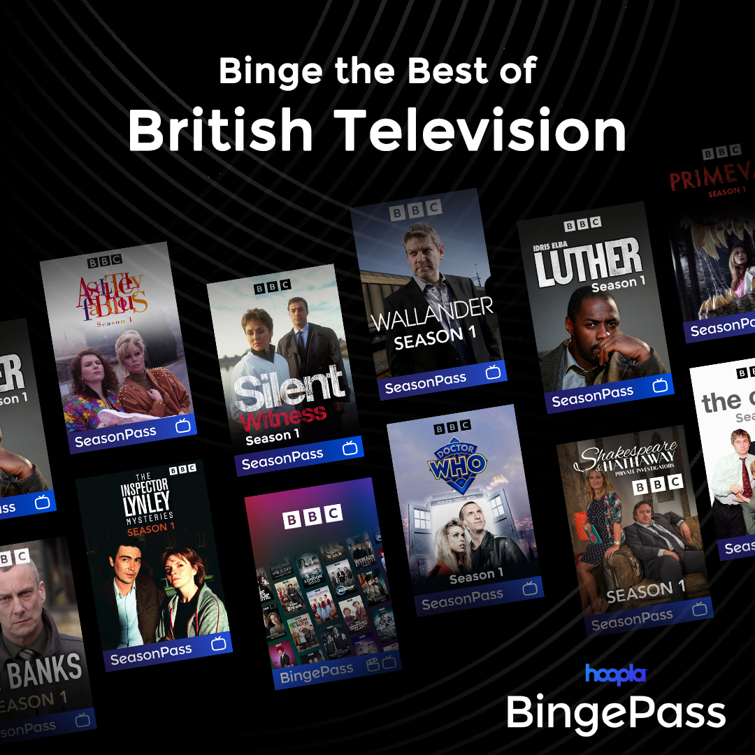 Get access to a wide variety of beloved BBC series with the BBC BingePass or binge and entire season with BBC SeasonPasses on Hoopla. Binge the best of British television with series like Doctor Who, The Office, DCI Banks and more! https://www.hoopladigital.com/collection/116766