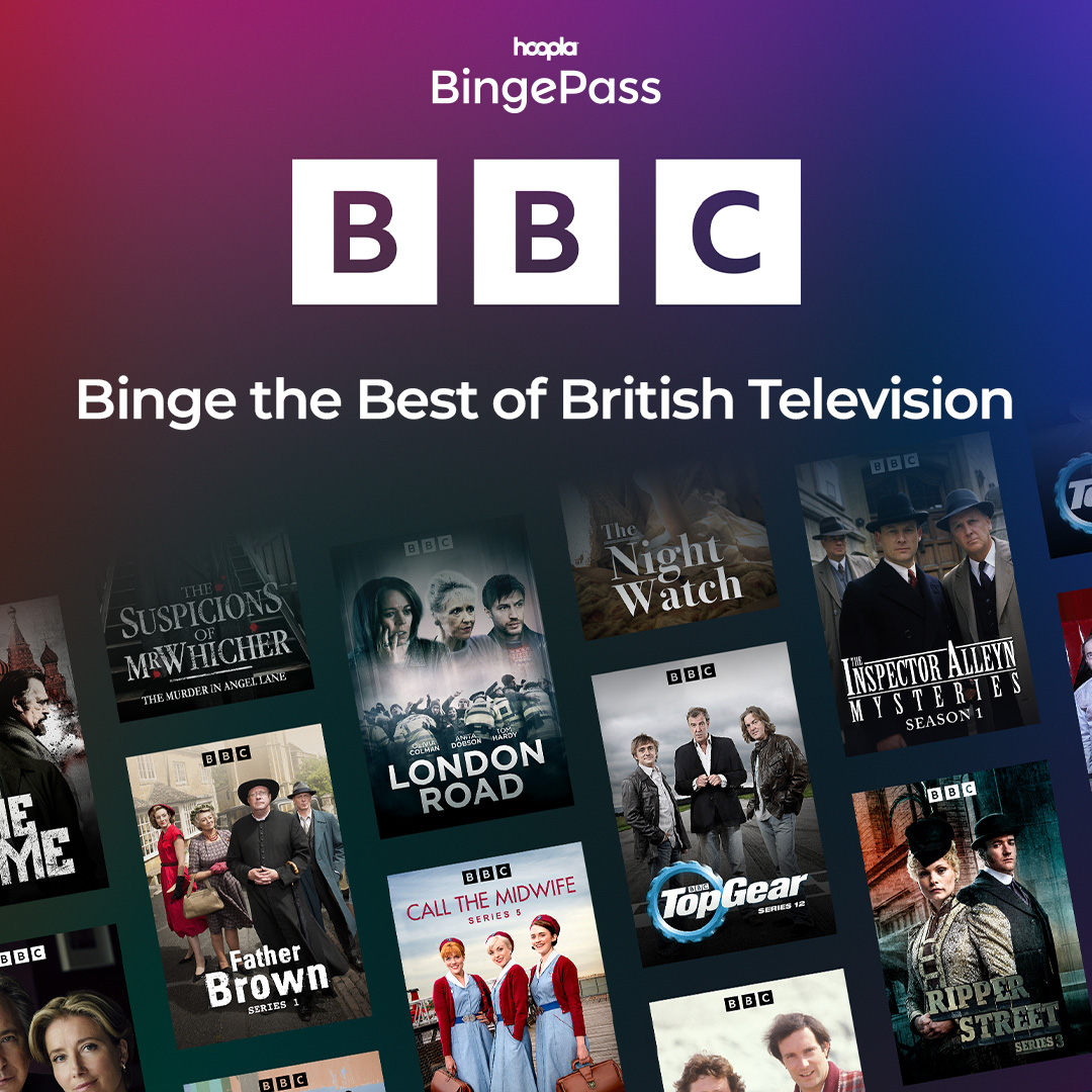 Drama. Mystery. Intrigue. Get it all with the BBC BingePass on Hoopla! From Father Brown to Call the Midwife, enjoy the best of British TV for 7 days with just one borrow. https://www.hoopladigital.com/bingepass/19220647