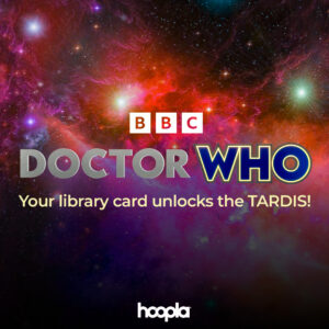 Let your patrons know that they can watch the BBC Doctor Who series - the Ninth Doctor played by Christopher Eccleston. Below you will find 2 different sets of social assets to share with patrons. Also share the blog post linked below with your patrons for more information about each Doctor, the available seasons, and release dates for upcoming Doctor Who seasons on Hoopla!