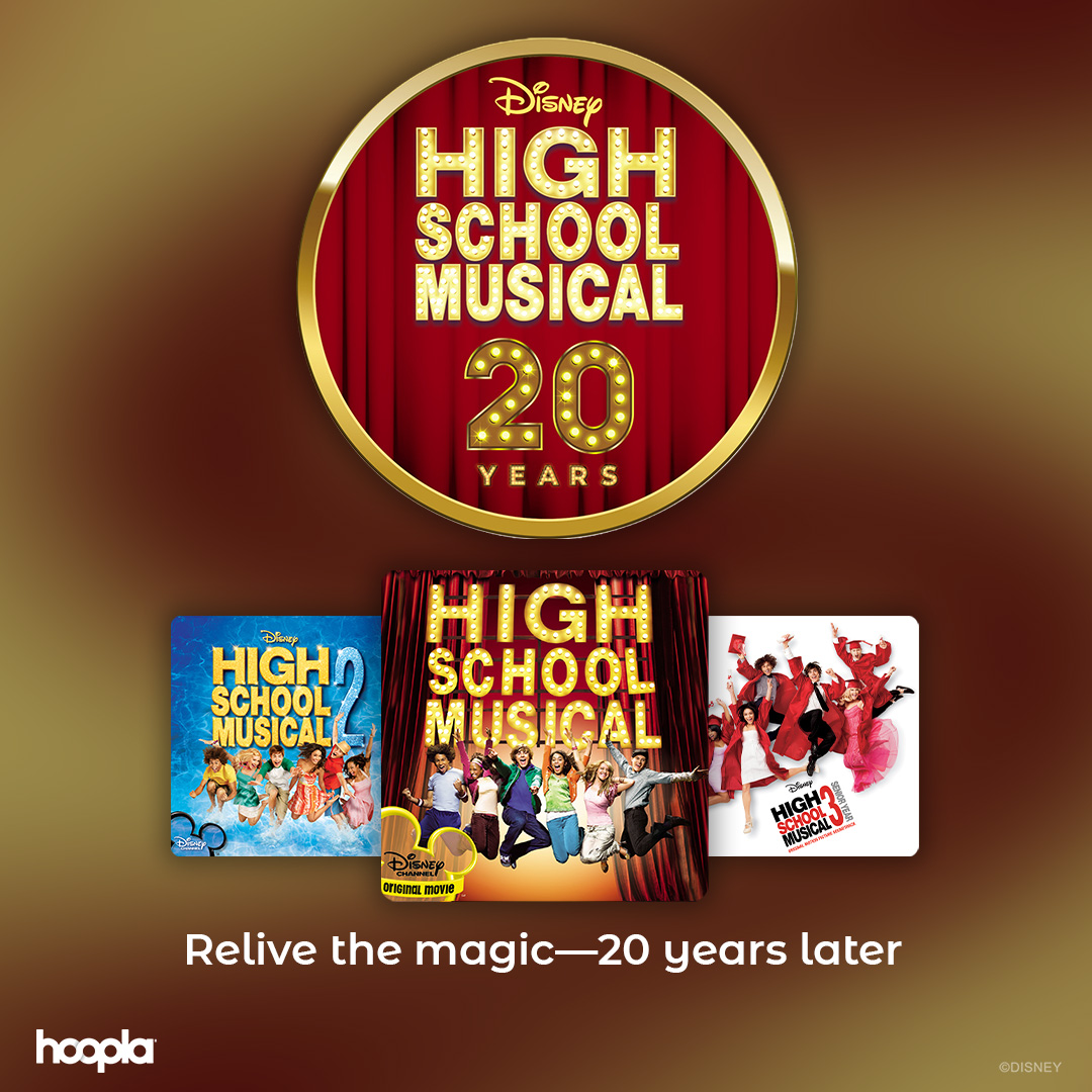 Disney's High School Musical turns 20 this year! Patrons can relive the magic and memories with the High School Musical and High School Musical the Musical the Series album and more on Hoopla with this anniversary collection.