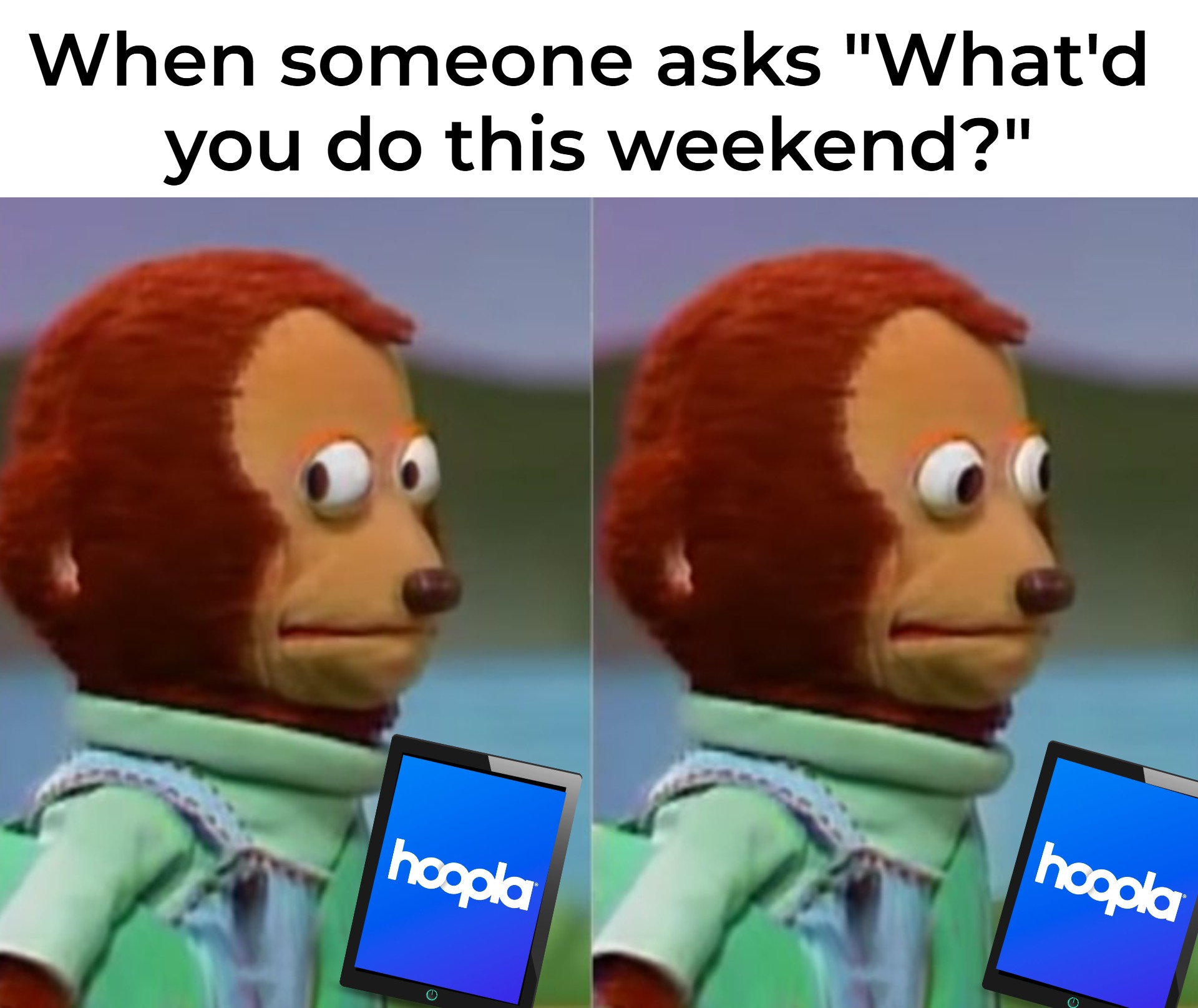 Spice things up and inform your patrons about Hoopla by sharing these memes on social media