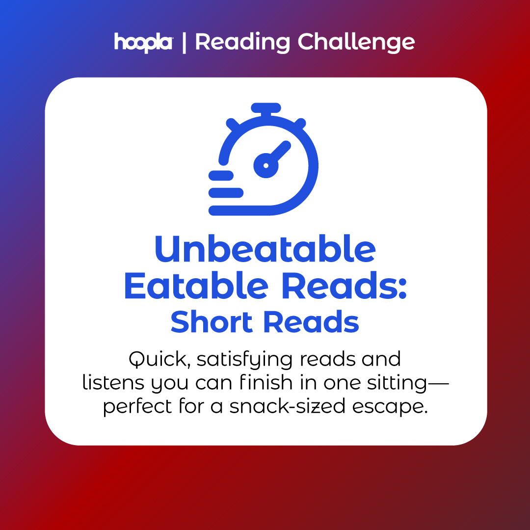 Finish the year with Hoopla’s 2026 Reading Challenge! December’s challenge is “Unbeatable Eatable Reads: Short Reads” – Complete the challenge by reading a book or comic from this collection. Don’t forget to share your achievement on social media by tagging @hoopladigital and using the hashtag #hooplachallenge. Start the challenge: https://www.hoopladigital.com/collection/unbeatable-eatable-reads-or-short-reads/179348