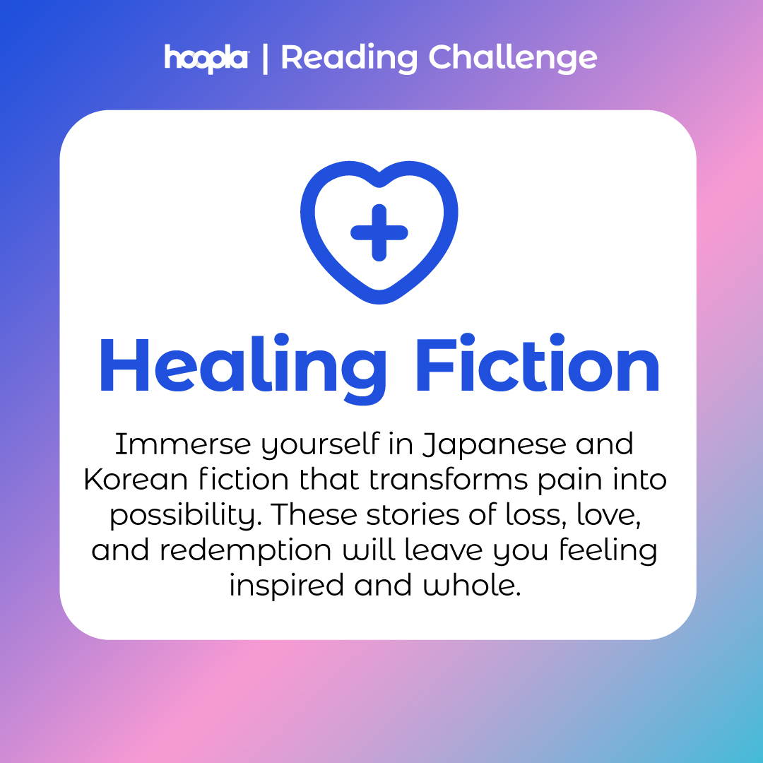 January's theme is "Healing Fiction": Immerse yourself in Japanese and Korean fiction that transforms pain into possibility. These stories of loss, love, and redemption will leave you feeling inspired and whole. Share these assets along with the challenge collection with your patrons!